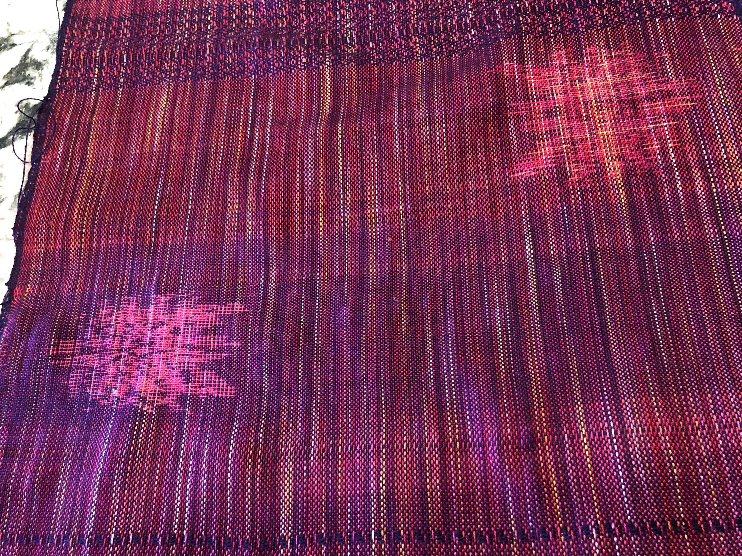 Here is my first ikat scarf. It is not a great picture but it is a beautiful scarf! I can't begin to thank you for all you taught me and for helping me to find a weaving niche - I may never weave anything but silk ikat again! You were so generous with your time and knowledge and made me feel so comfortable in your studio. My time with you was truly one of the highlights of my 20 year weaving experience! I was afraid of fine threads before I entered your studio - now I tell other weavers "it's just as easy as any other weaving" and I never thought I could master the concept of double ikat but you helped me understand and become willing to try it. Not only are you a wonderful and gifted artist but also a very good teacher.