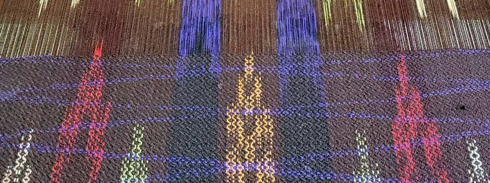 I use the medium of ikat-dyeing to create a painterly image in woven form. Ikat allows the build up of layers of imagery as the warp and weft each have the potential of bearing their own image and emotional message.